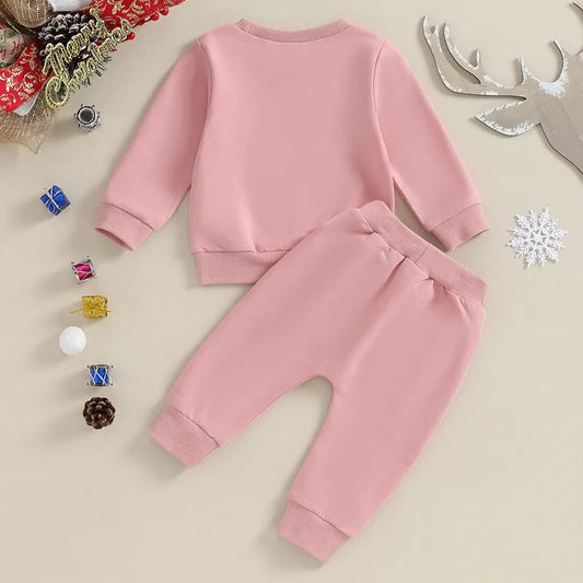 Long Sleeved Sweatshirt and Sweatpants Set - Pink Santa Two Piece Outfit